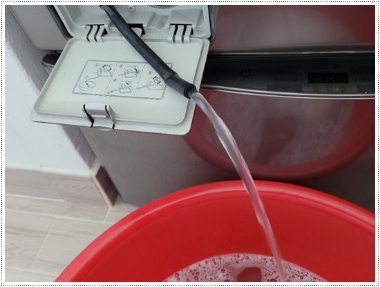 이렇게 배관을 녹여주면서 10~20분 정도 시간이 흘렀다면 드럼세탁기 내부 물을 빼주는데요.