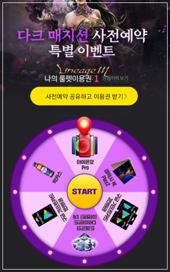 위의 사전예약 특별이벤트 바로가기 를 클릭하시면 룰렛 이벤트에 참여하실 수 있습니다.