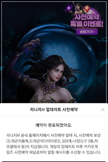 리니지M 다크매지션 사전예약은 카카오에서도 추가 예약을 할 수 있습니다.